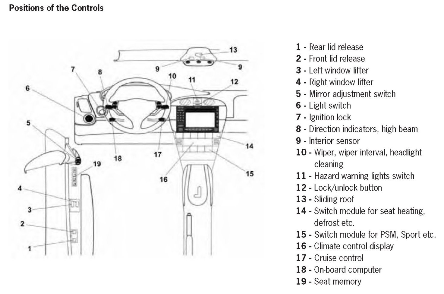 Positions of the Controls