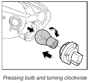 2. Press the bulb into the bulb holder, turn it clockwise and remove it from the bulb holder.