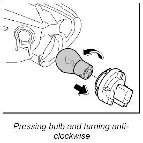1. Press the bulb into the bulb holder and turn it anti-clockwise until it engages fully.