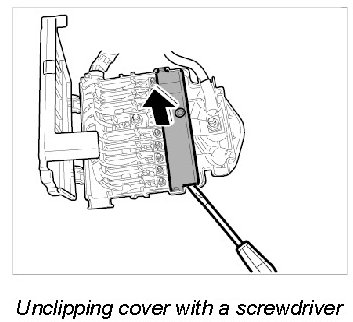 1. Unclip the cover for the fuse elements with a screwdriver.