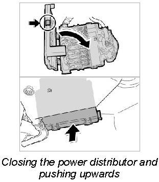 5. Close the power distributor until the lid is felt to engage and seal with the red seal label.