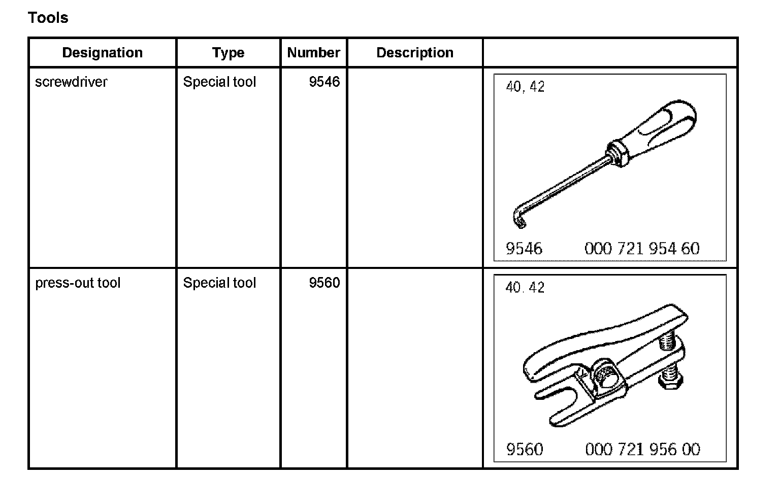 3. Loosen tie rod and control arm at wheel carriers and press off the ball joints with special tool press-out tool 9560. When loosening the lock nuts, counter at the ball-joint pins with special tool screwdriver 9546 (Torx screwdriver).