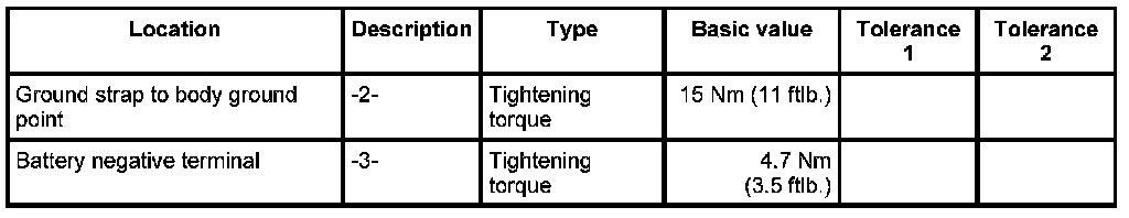 6. Fit ground strap for the negative terminal on the battery and screw it on securely -3-. - Tightening torque: 4.7 Nm (3.5 ftlb.)