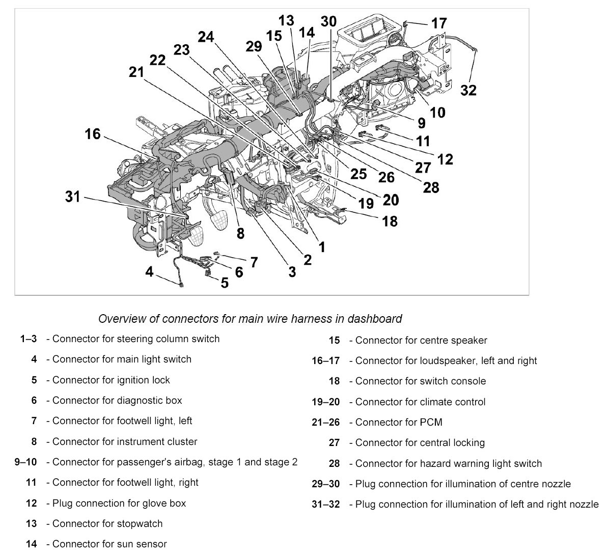 30.1. Clip in wire harness for Tiptronic control unit.