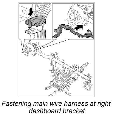 2. Fasten main wire harness at right dashboard bracket.