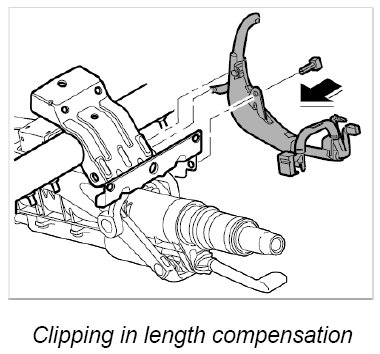 6. Clip in length compensation at the steering column.