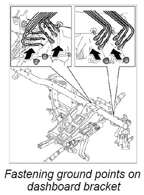 7. Fasten ground points on dashboard bracket.