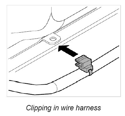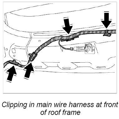 10. Clip in main wire harness at front of roof frame.