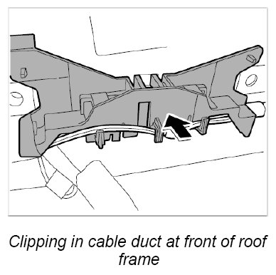 11. Clip in cable duct at front of roof frame.
