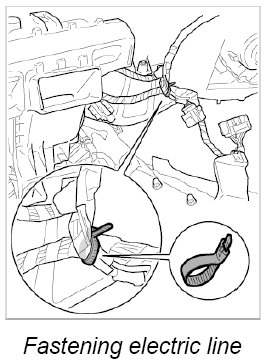 14.1. Lay main wire harness to heater/air-conditioning unit wire harness and fix with a tie-wrap.