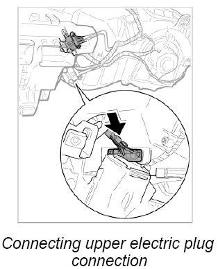14.2. Push in upper electric plug connection at heater/air-conditioning unit until it engages securely.