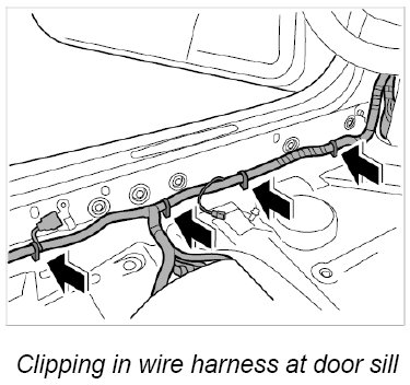 22. Clip in wire harness at door sill.