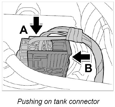 29. Push on connector for brake fluid sender -14- until it is felt to engage.