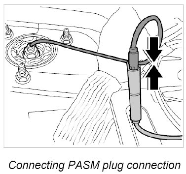 10. Connect plug connections for PASM, front left and right -30 and 31- until they are felt to engage.