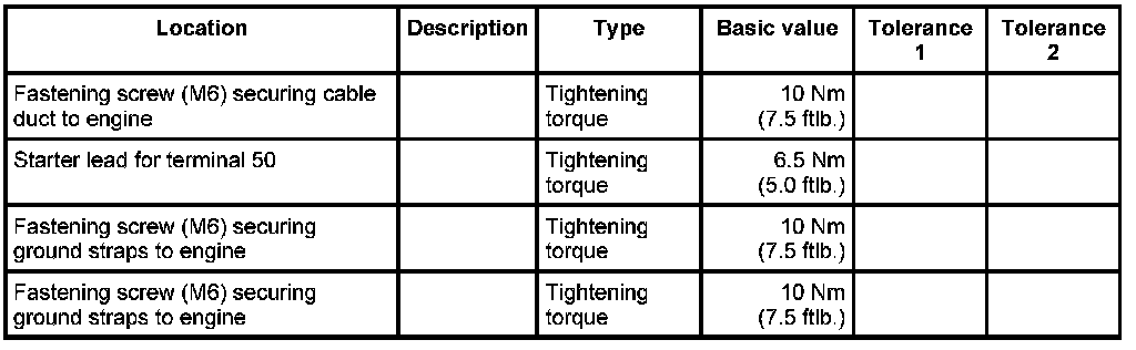 10. Position starter lead for terminal 50 -31- and secure with fastening nut. - Tightening torque: 6.5 Nm (5.0 ftlb.)