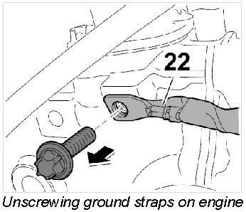6.1. Unscrew fastening screw and remove ground straps -22-.