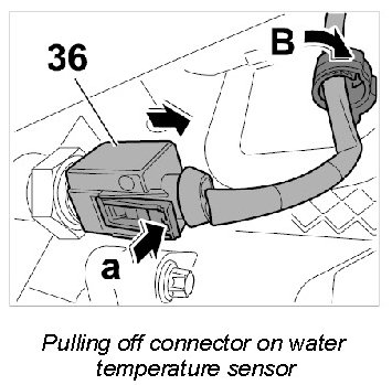 16.2. Release connector on water temperature sensor -36- ( -Arrow a- ) and pull it off.