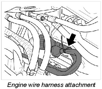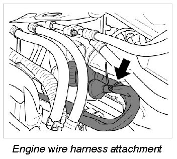 19.1. Unclip starter lead at cable duct -Arrows-.