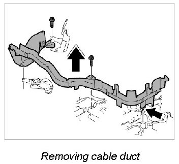 20.1. Unscrew fastening screws, unclip cable duct -Arrow- and remove it.