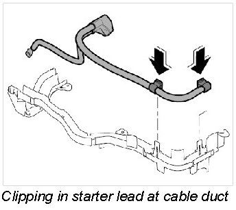 3.1. Clip in starter lead at cable duct -Arrows-.