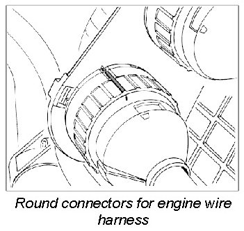 17.2. Release engine wire harness at the two plug connections and disconnect it by turning the bayonet locks anti-clockwise.