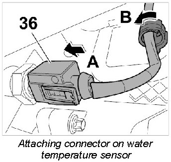 6.1. Plug in connector on water temperature sensor -36- ( -Arrow A- ) until it engages firmly.