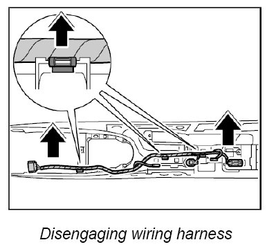 2. Disengage retaining clips with wiring harness on centre console and remove the harness.