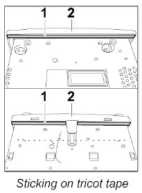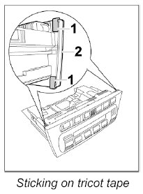 1.3. Stick tricot tape -1- on the PCM flange -2- at the top and bottom.