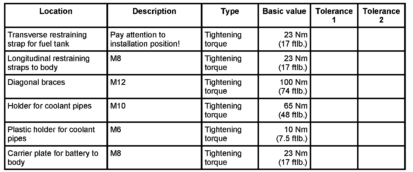 10. Install carrier plate for battery. - Tightening torque: 23 Nm (17 ftlb.).