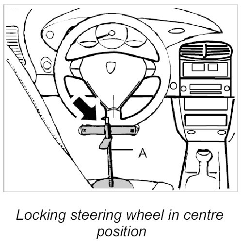 3. Move steering wheel to centre position (front wheels straight ahead) and lock it with the steering-wheel holder -A-.