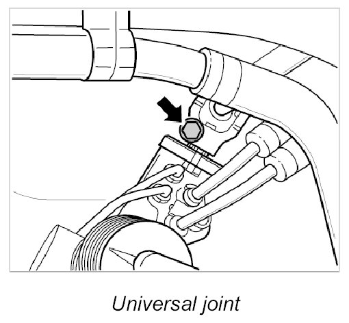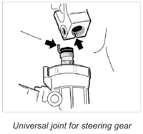2. Secure steering gear to front-axle carrier with two screws and connect universal joint to steering gear.