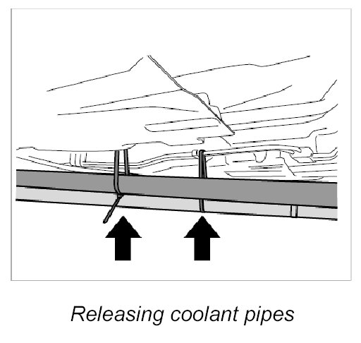 17. Release coolant pipes and secure with a tie-wrap.