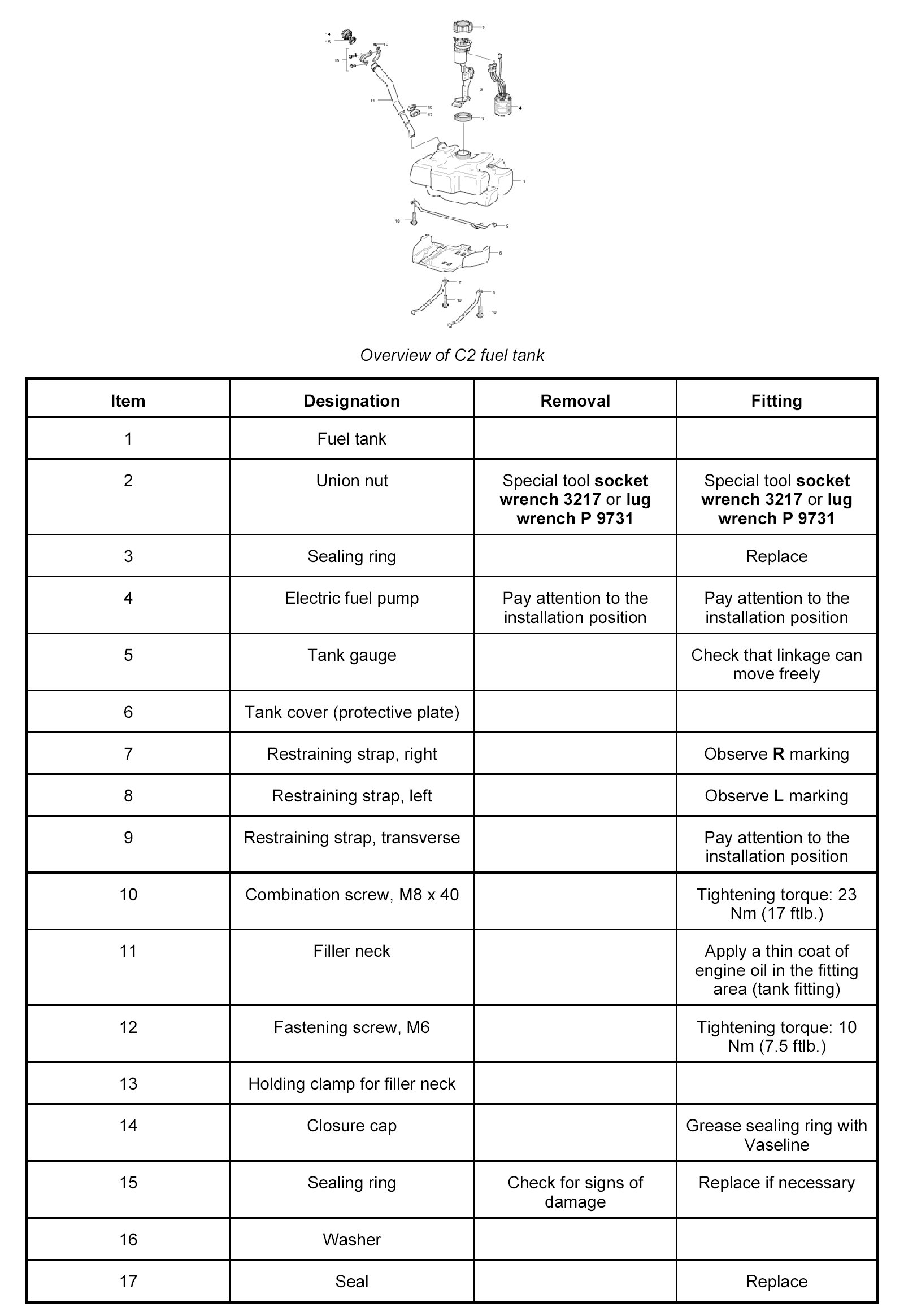 - Be particularly careful with the fuel-level sensor flange when levering out or fitting the fuel tank.