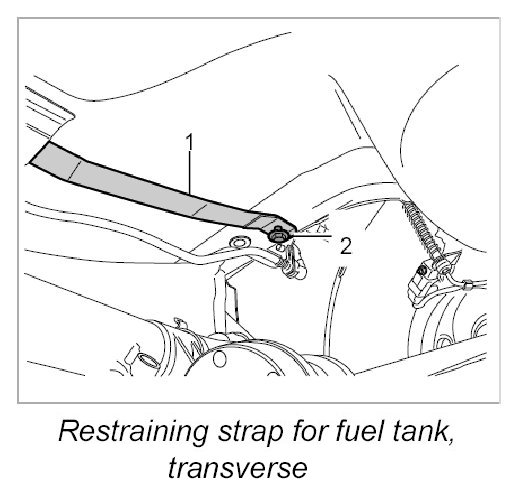 2. Place transverse restraining strap at the correct position on the tank and secure with two M8 screws. - Tightening torque: 23 Nm (17 ftlb.)