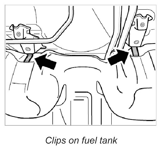 3. Unclip both clips on the body and get another person to help you lift the fuel tank out of the vehicle. To do this, first tilt the tank towards the right. Pay attention to the tank flange.