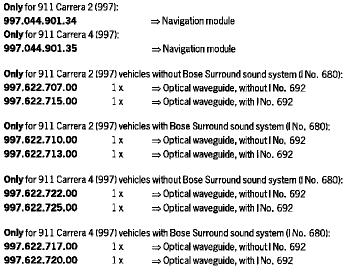 Before ordering parts (navigation module and optical waveguide), always check and consider the existing vehicle equipment.