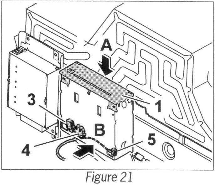 8.3.3 Insert navigation unit into the retaining frame and press in connectors until they are felt to engage --> Figure 21-3, 4 and 5-.