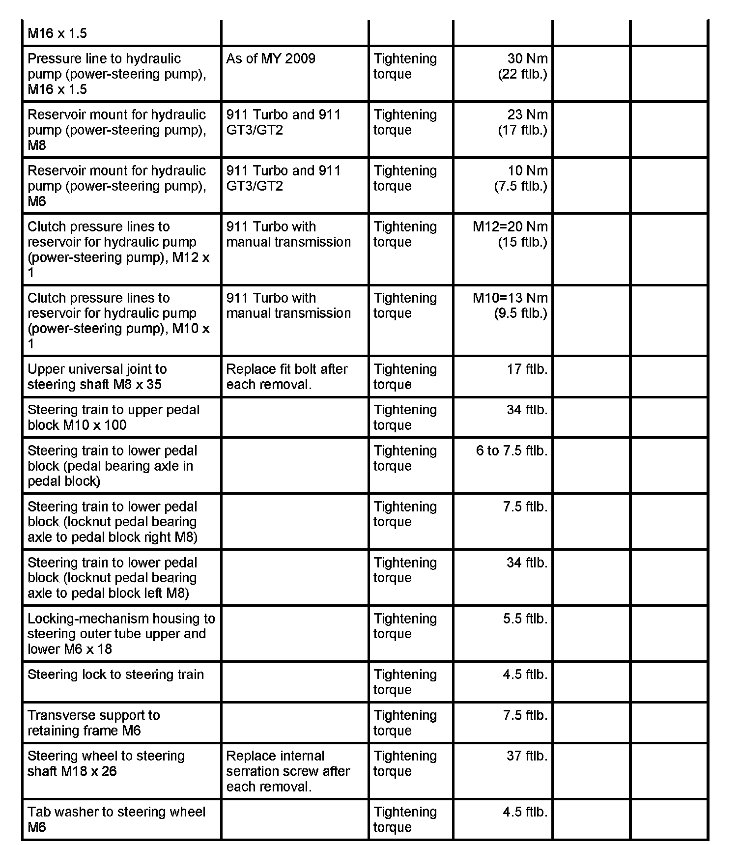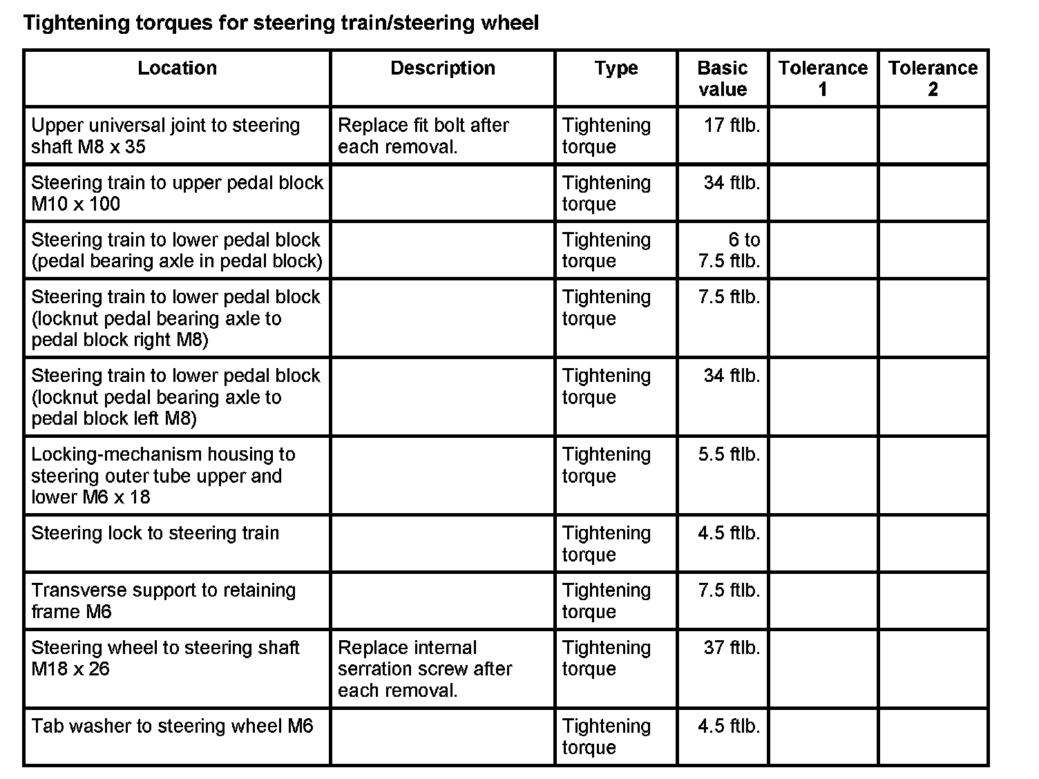 Tightening Torques For Steering