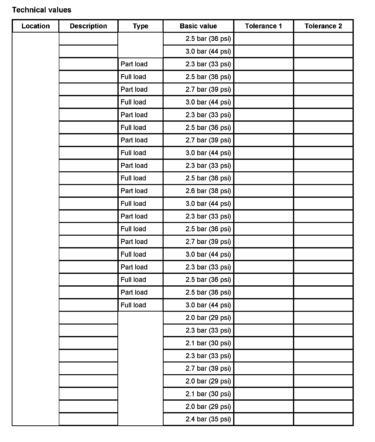 Tire pressure of cold tires (approx. 20°C)