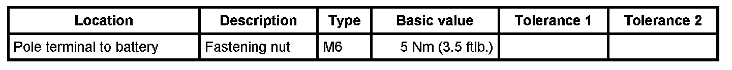 4. Connect the negative cable.- M6: 5 Nm (3.5 ftlb.)