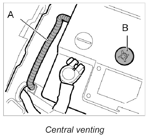 - In batteries with central venting, there is an increased concentration of oxyhydrogen gas at the hose opening. The venting hose should not be bent or blocked by dirt.