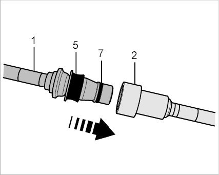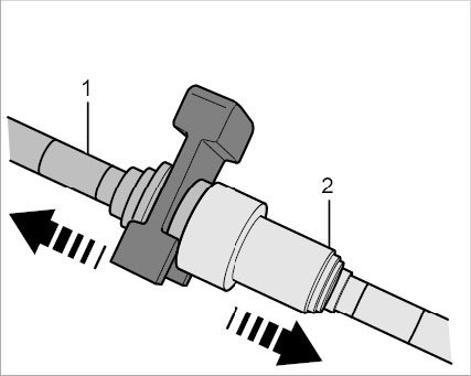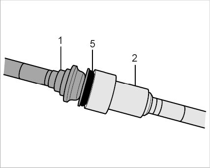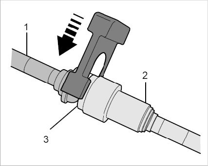 Pull on the connector -1- to check that the plug-in coupling is locked (push and pull slightly in axial direction). Counter at the plug-in sleeve -2- while doing this. If the plug-in coupling is locked correctly, you should be able to feel slight axial play between the connector -1- and plug-in sleeve -2-. A plug-in coupling cannot be partly locked.
