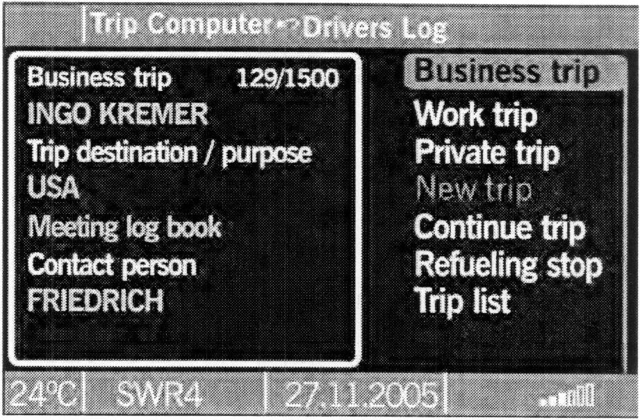 The PCM2.1 logbook supports the driver in maintaining a logbook by recording all relevant data for the type of trip (private, business), much of it automatically, and reducing user input to a minimum. PCM2.1 automatically records every trip > 60 miles/100 kilometers. Trip recording starts as soon as the key is instead into the ignition and ends when it is removed. PCM2.1 will automatically record the following data: