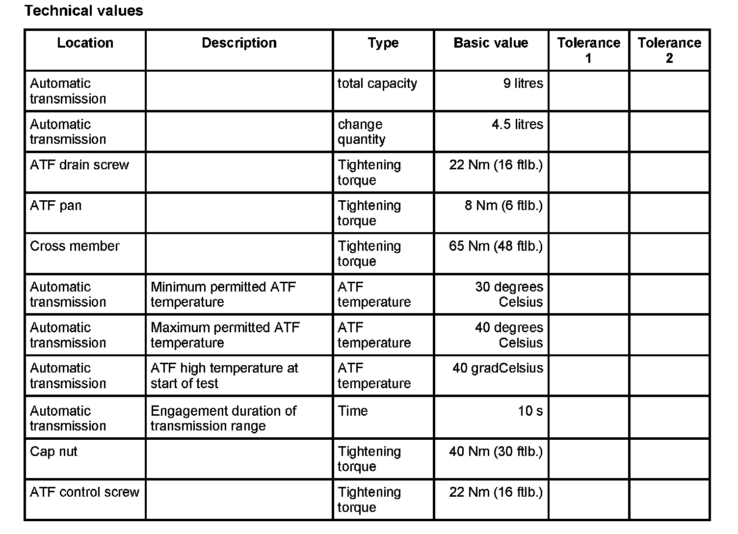 The ATF temperature at the start of testing must not be higher than - ATF temperature: 40°C.