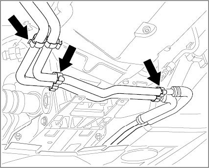 4. Disengage cable and vacuum line from the retaining clips of the ATF pan.