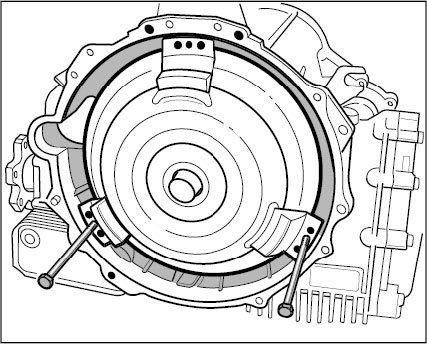 2. Screw two screws (M8) into torque converter and remove torque converter using the screws from transmission input shaft.