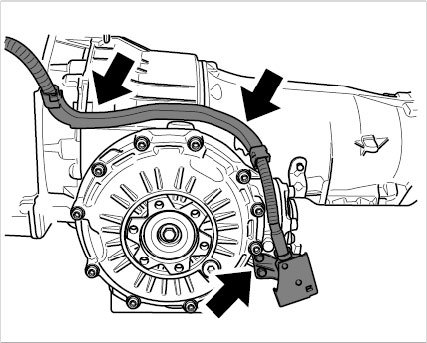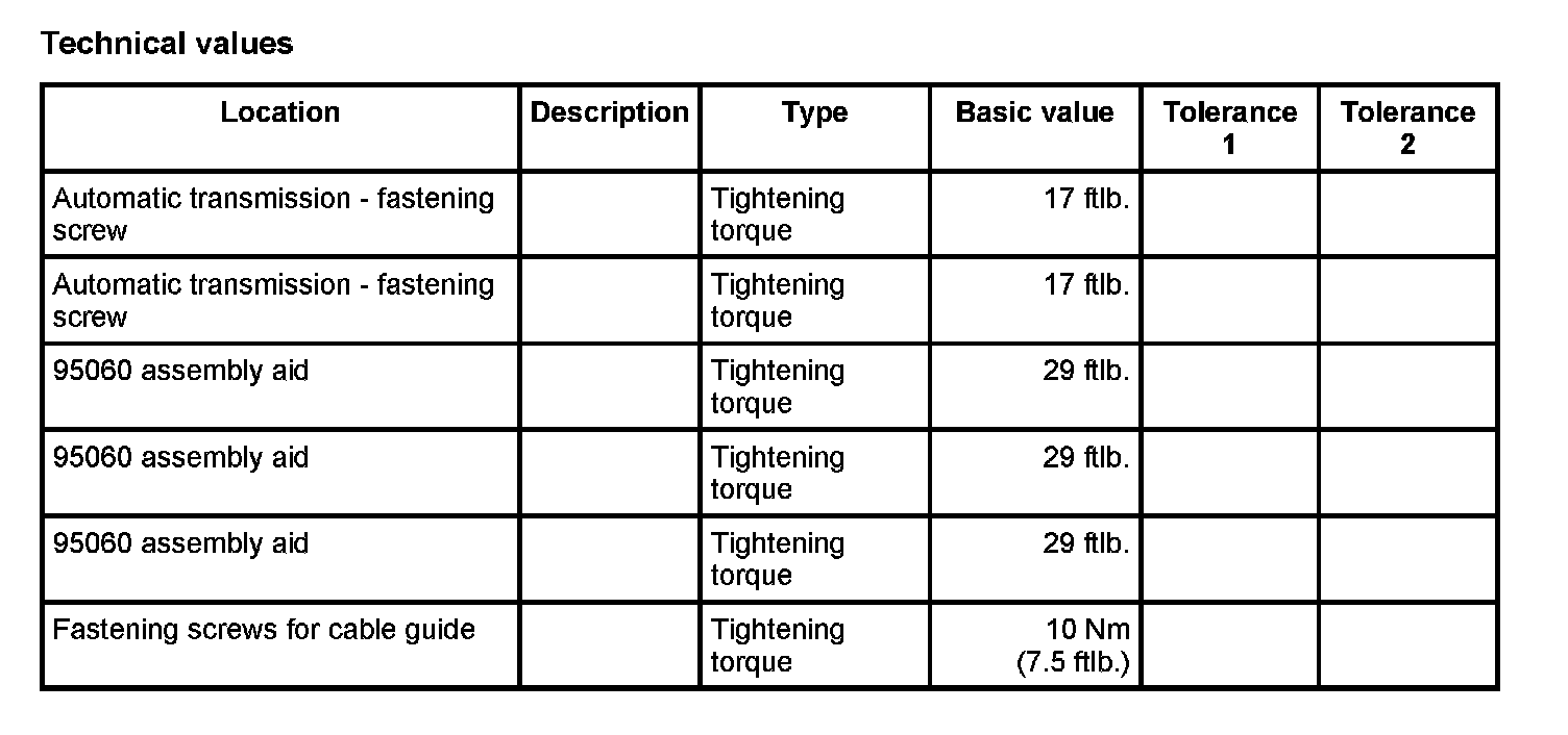 2. Screw in fastening screws and clip in cable guide in transmission. - Tightening torque: 10 Nm (7.5 ftlb.)