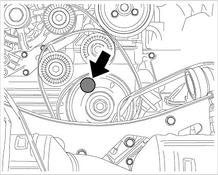 1. Turn engine clockwise until one of the bores (U4, U5, or U6, marked on belt pulley) in the belt pulley is aligned with the centering bore in the crankcase and fixing pin 95951 (short) can be inserted.