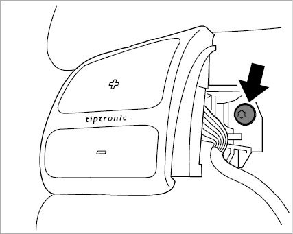 2. Insert rocker switch and washer into steering wheel and screw in fastening screw.