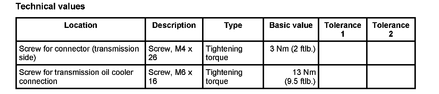 5. Connect transmission oil cooler line to the transmission oil cooler, fit M6 x 16 (E10) screw -4- and tighten using an E10 Torx tool. - Tightening torque: 13 Nm (9.5 ftlb.)